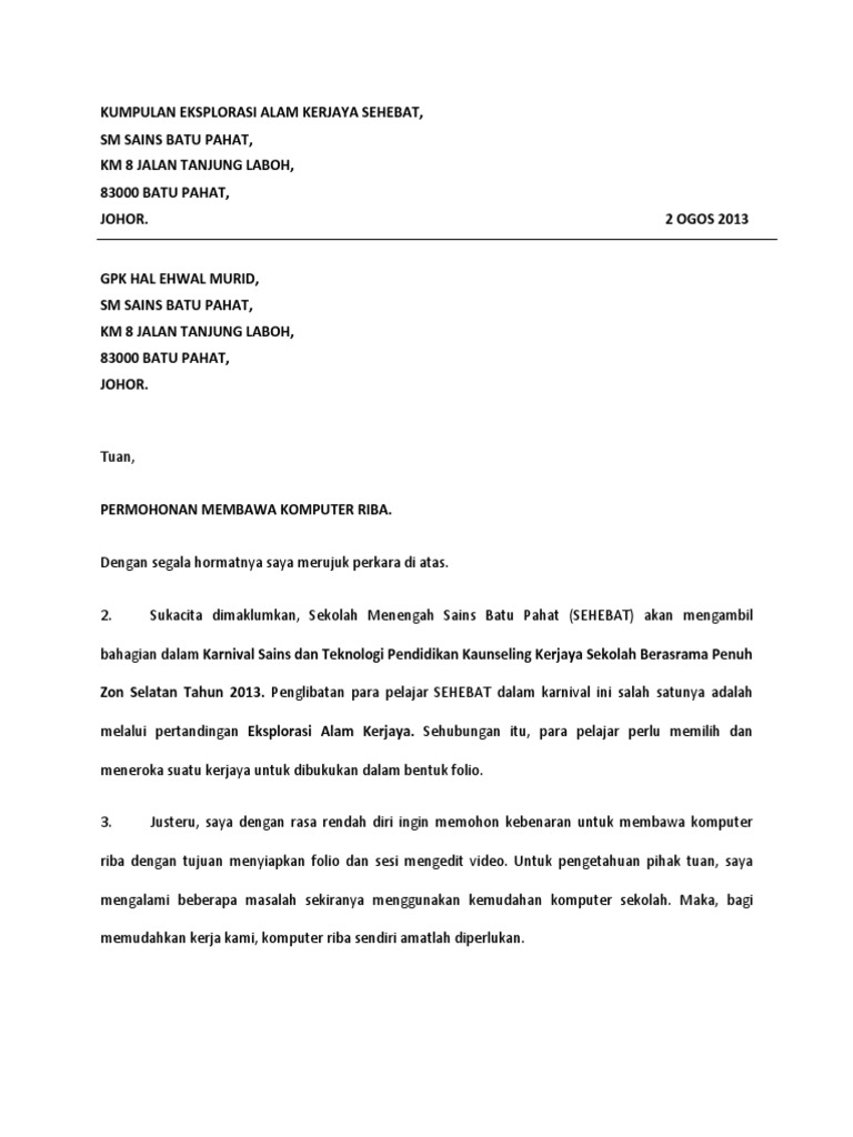 Contoh format laporan aktiviti laporan aktiviti universiti kebangsaan malaysia 10 butiran aktiviti a nama aktiviti. Surat kebenaran wakil contoh surat rasmi kebenaran surat rasmi. Kami mendapati kilang tuan merupakan kilang yang terbesar dan dilengkapi jentera-jentera yang tercanggih.